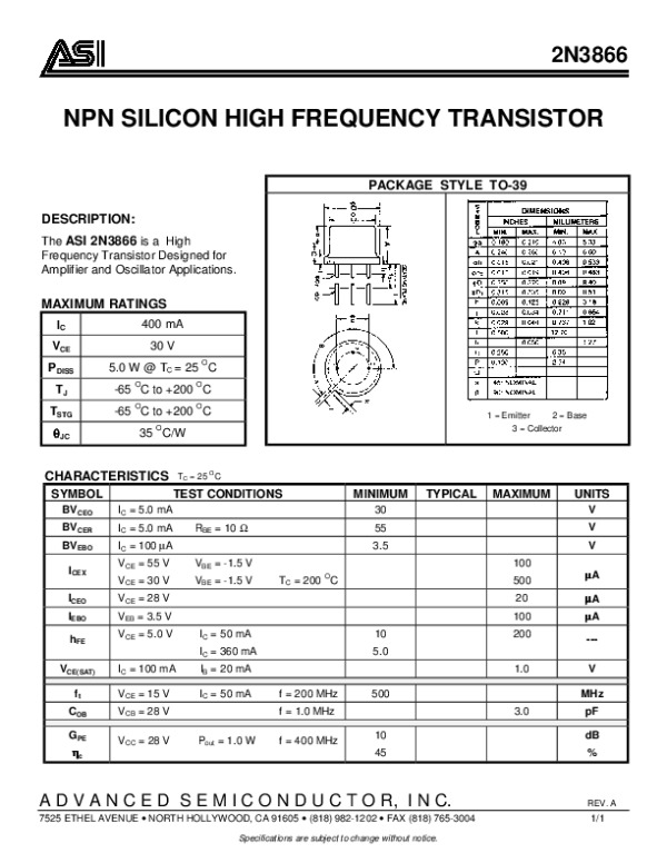 -> Просмотр технического описания на 2N3866