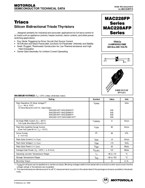 Datasheet MAC228FP: