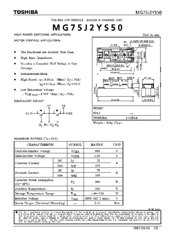Datasheet MG75J2YS50DS: