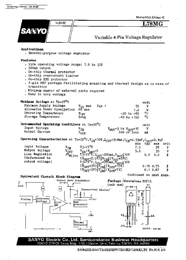 Просмотр технического описания на L78MG13