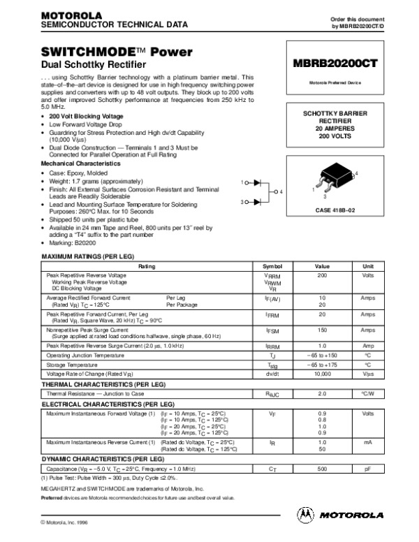 Datasheet MBRB20200CTREV0D2X: