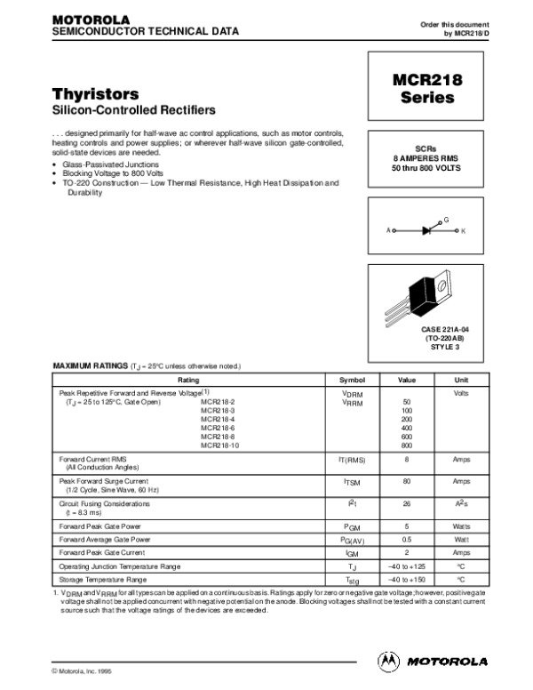 Datasheet MCR218:
