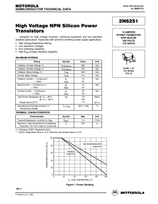 Datasheet 2N6251: