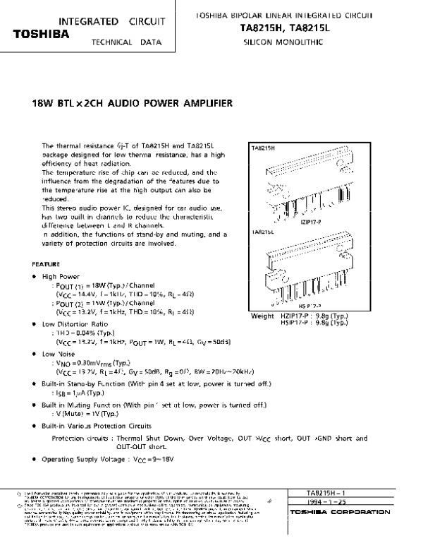 Datasheet TA8215: