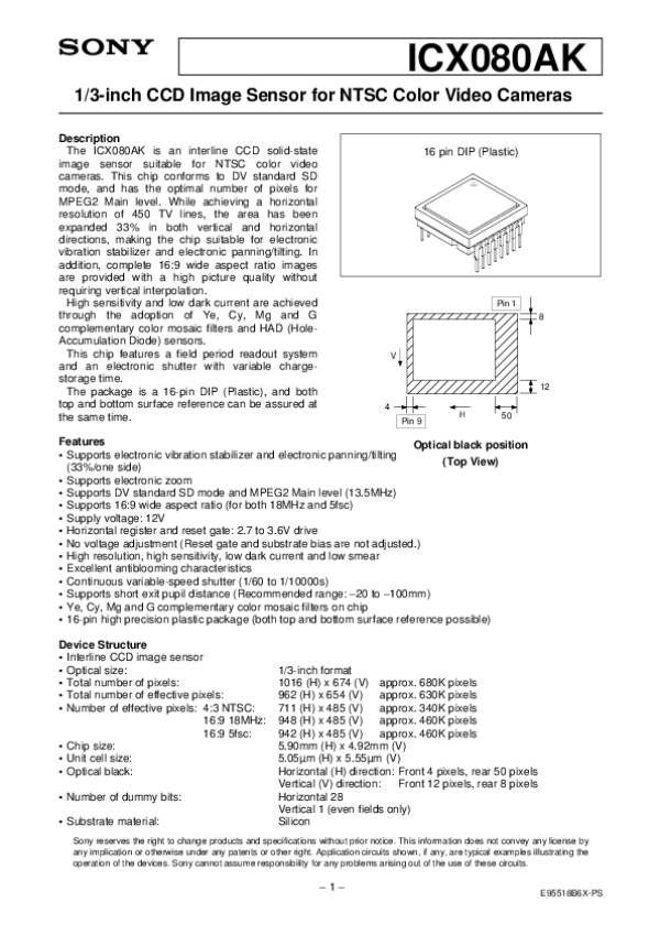 Datasheet ICX080AK: