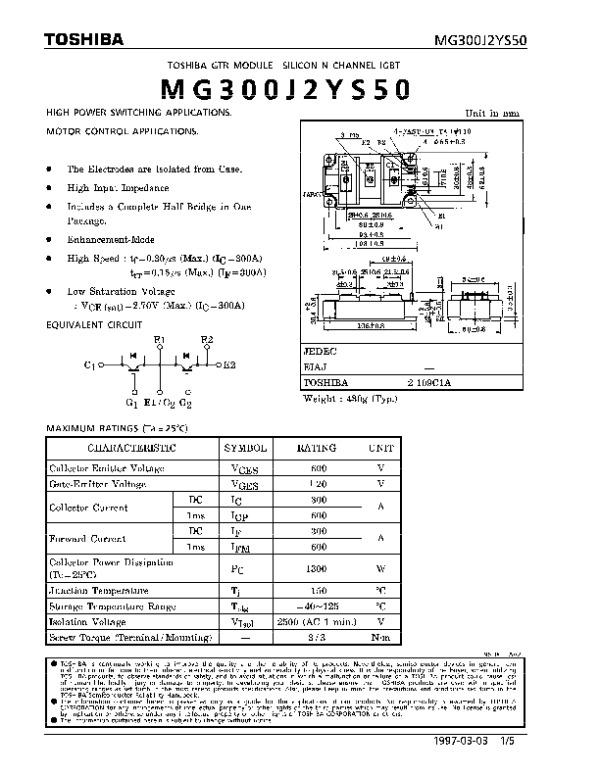 Datasheet MG300J2YS50DS: