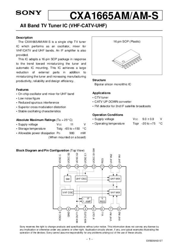 Datasheet CXA1665: