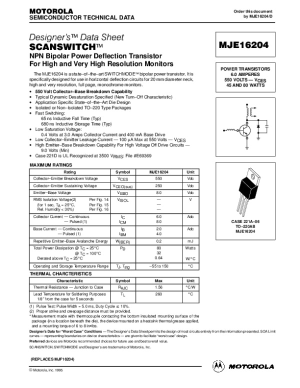 Datasheet MJE16204: