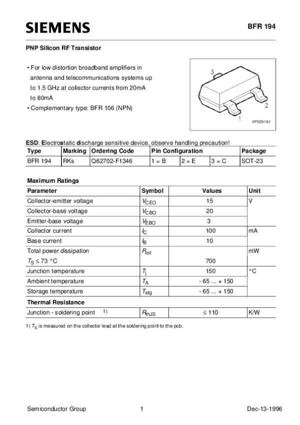 Datasheet BFR194: