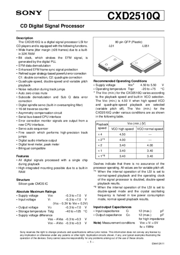 Datasheet CXD2510Q1: