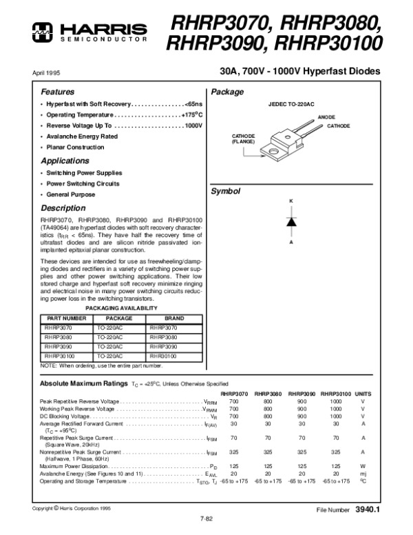 Просмотр технического описания на RHRP3070