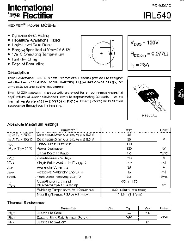 Datasheet IRL540:
