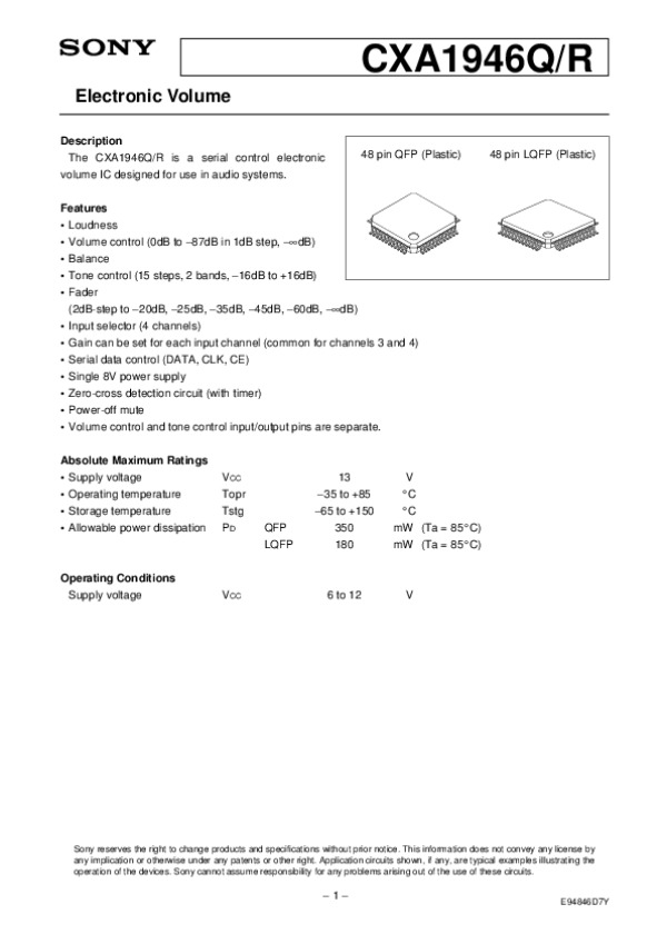 Просмотр технического описания на CXA1946QR