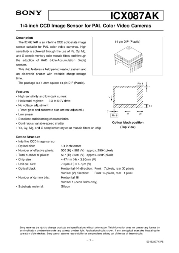 Datasheet ICX087AK: