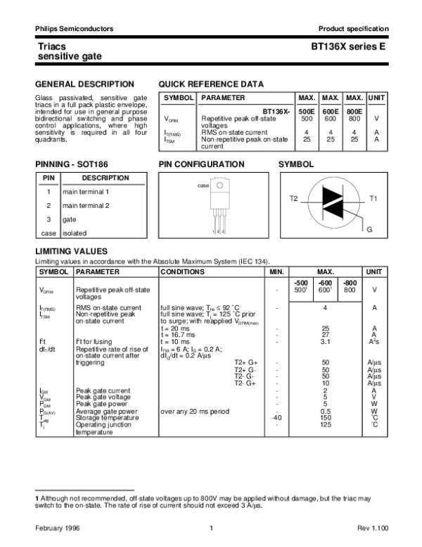 Datasheet BT136XE: