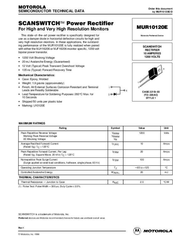 Datasheet MUR10120EREV1DX: