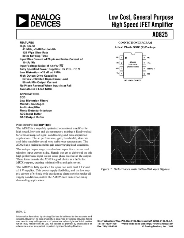 Datasheet AD825C: