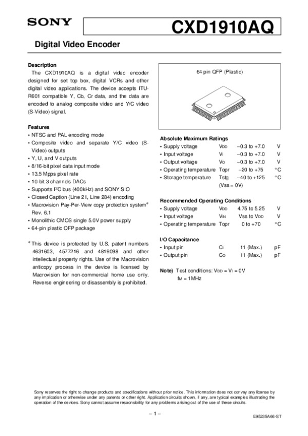 Datasheet CXD1910: