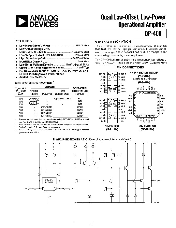 Datasheet OP400: