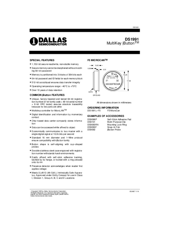 Datasheet DS1991:
