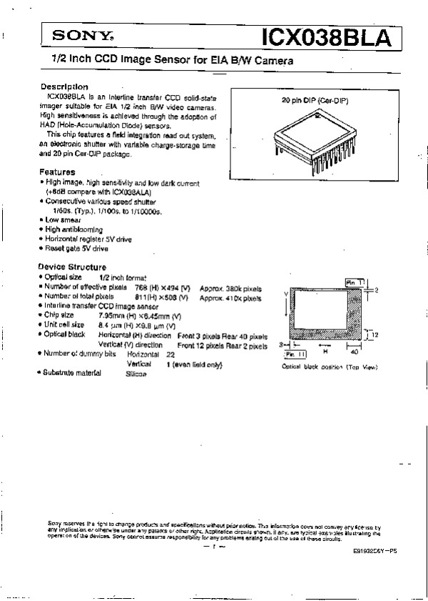 Datasheet ICX038: