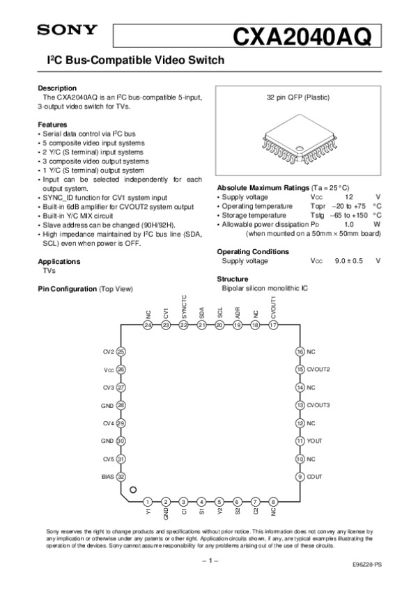 Просмотр технического описания на CXA2040