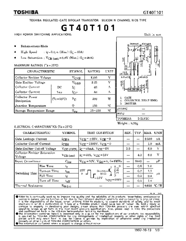 Datasheet GT40T101: