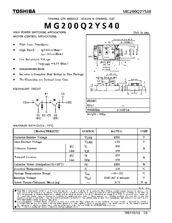 Datasheet MG200Q2YS40DS: