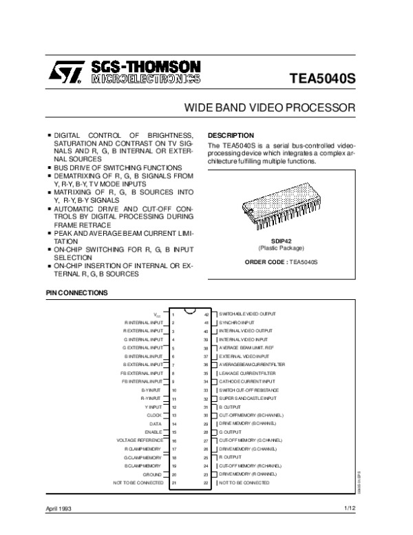 Просмотр технического описания на TEA5040S
