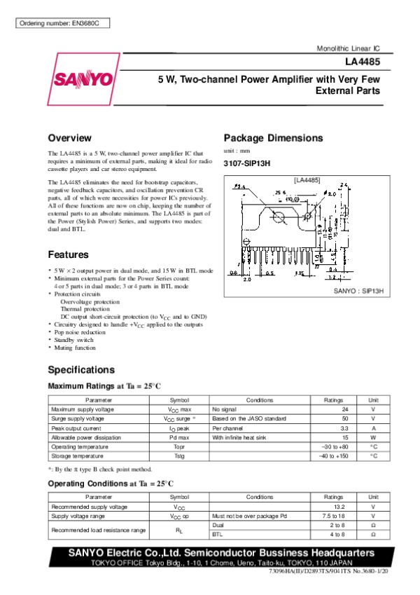 Datasheet LA4485: