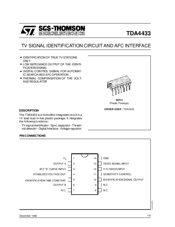 Просмотр технического описания на TDA4433