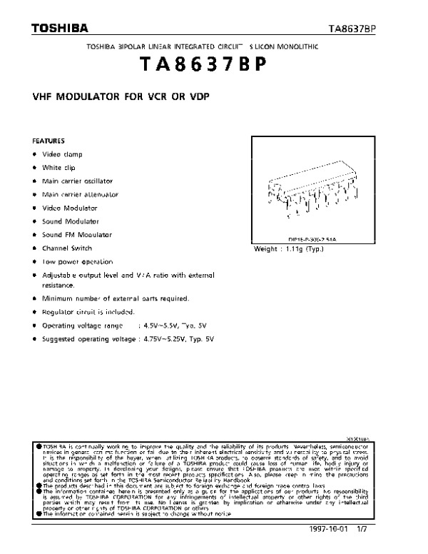 Datasheet TA8637BP:
