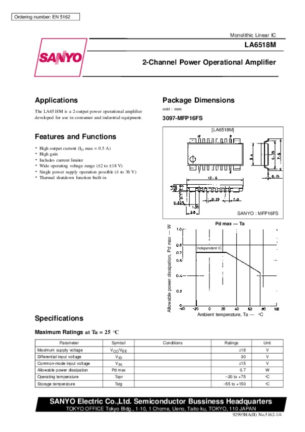 Datasheet LA6518M:
