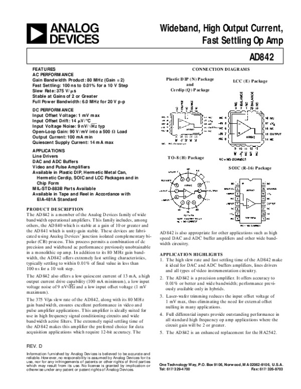 Datasheet AD842: