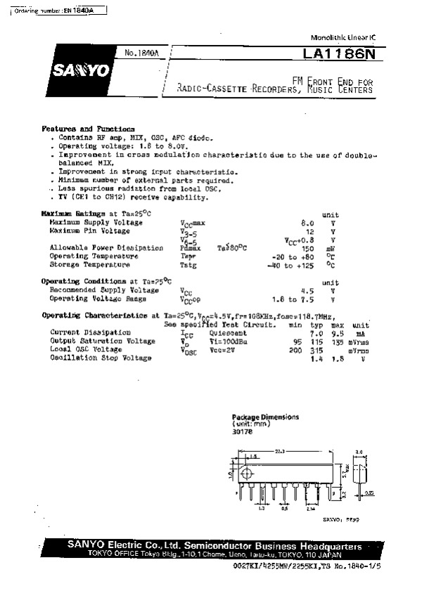 Datasheet LA1186N:
