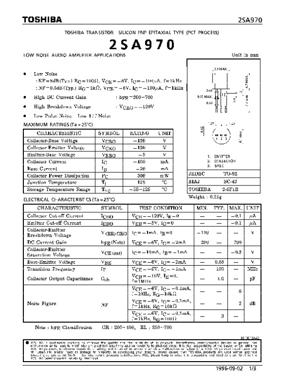 Datasheet 2SA970: