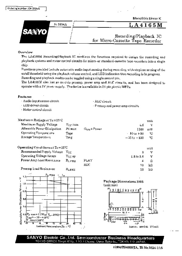 Datasheet LA4165M116:
