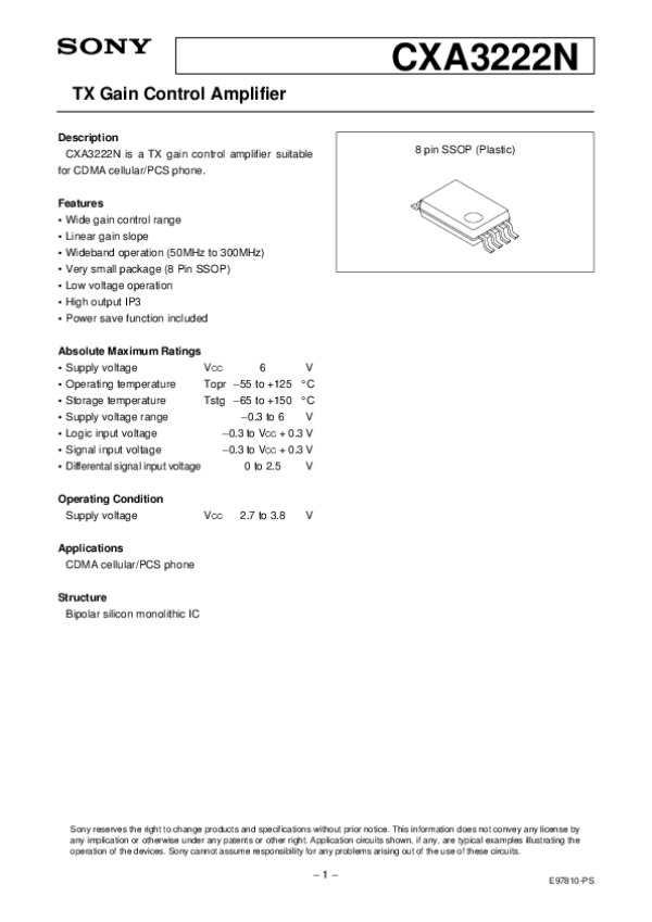 Просмотр технического описания на CXA3222