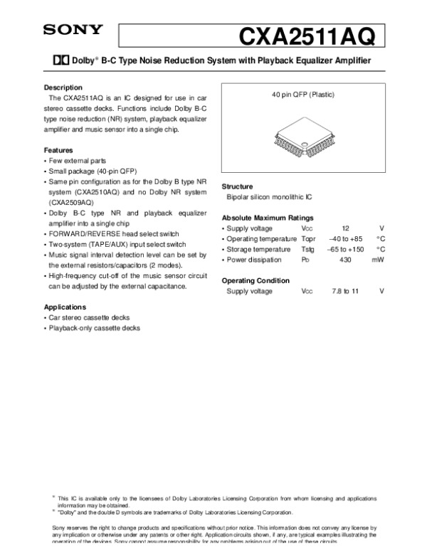 Просмотр технического описания на CXA2511