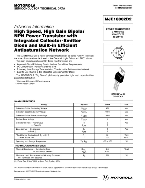 Datasheet MJE1802D: