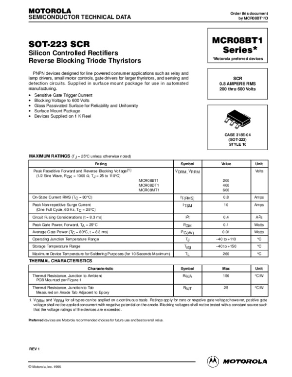 Просмотр технического описания на MCR08BT1