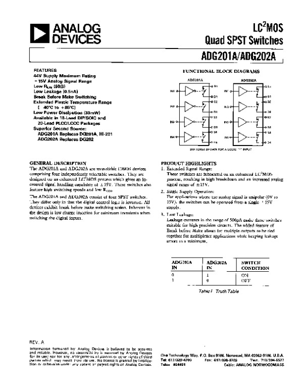 Datasheet ADG201A: