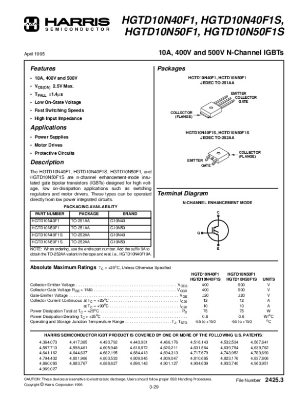 Datasheet HGTD10N4: