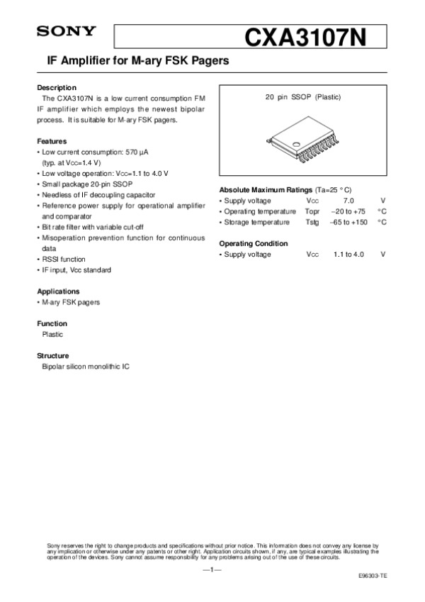 Datasheet CXA3107: