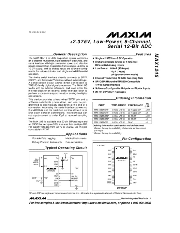 Datasheet MAX1245: