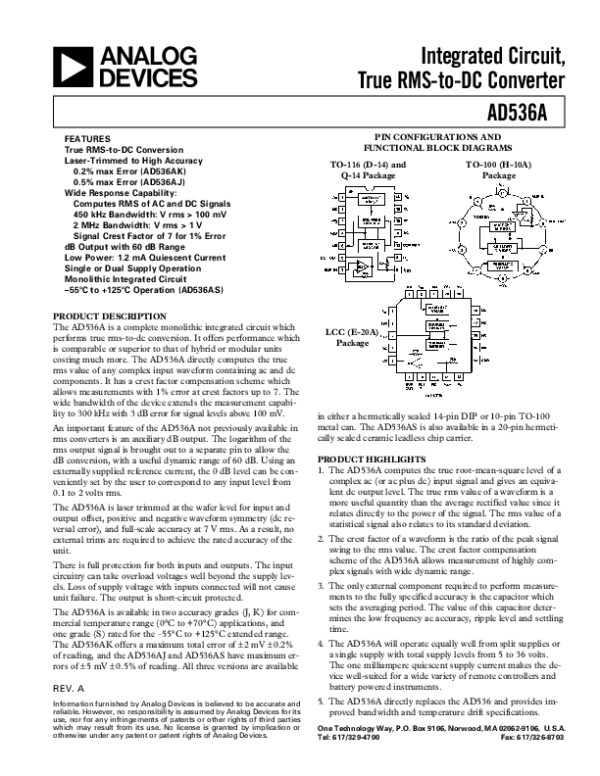 Datasheet AD536A: