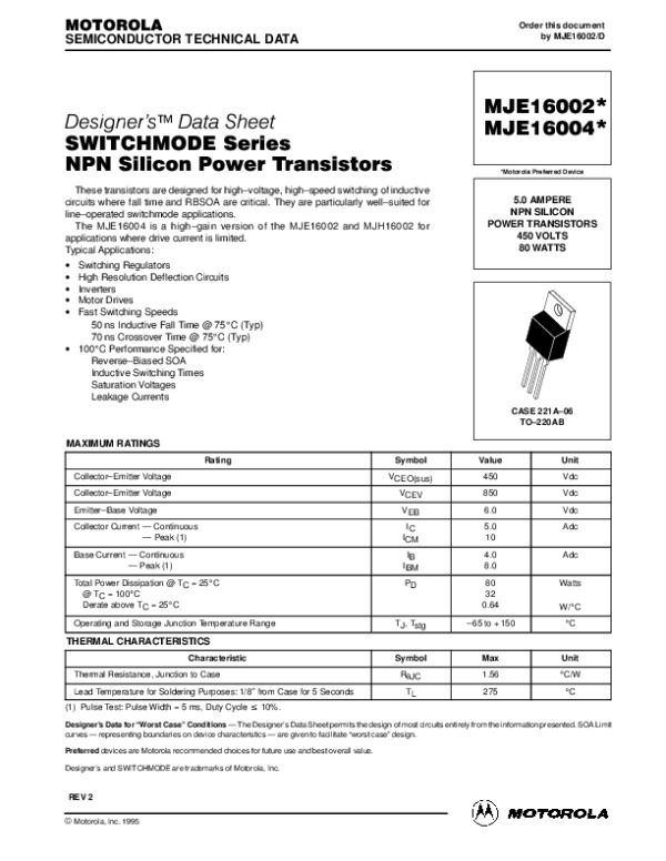 Datasheet MJE16002: