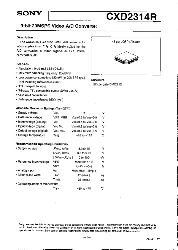 Datasheet CXD2314: