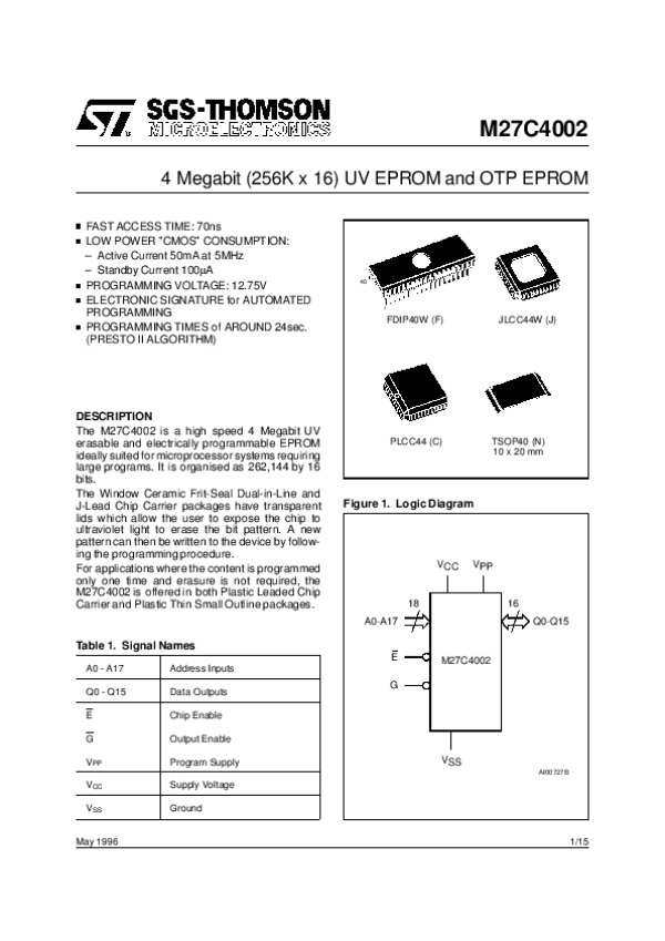 Просмотр технического описания на 27C4002