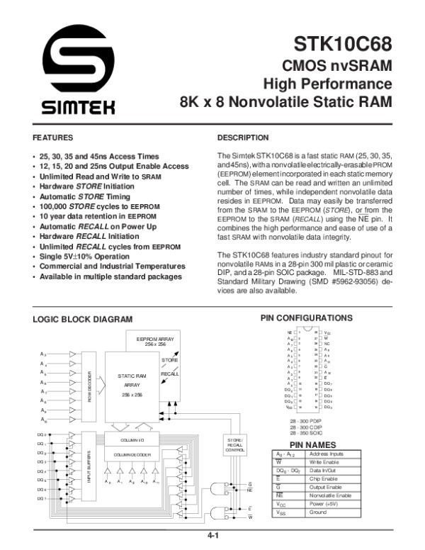Datasheet STK10C68:
